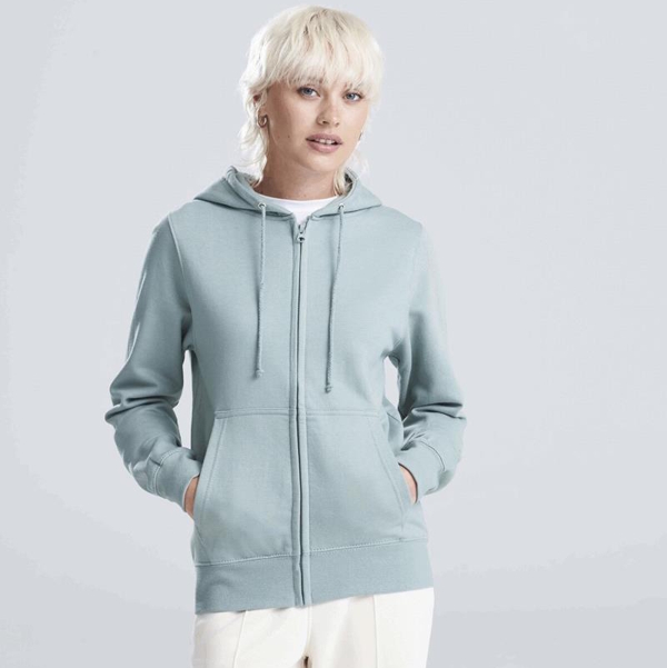 - Full zip hoodie with self fabric covered YKK zip